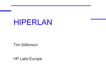 developed in Europe by ETSI - HIPERLAN is an interoperability standard which