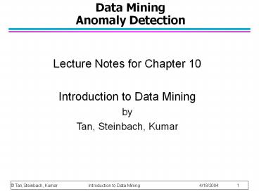 different than the remainder of the data - Variants of Anomaly/Outlier Detection Problems