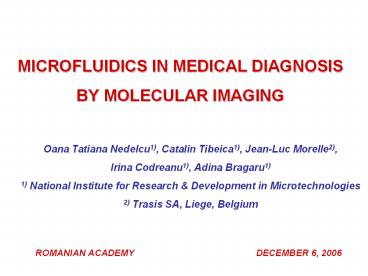 1MICROFLUIDICS IN MEDICAL DIAGNOSIS BY MOLECULAR