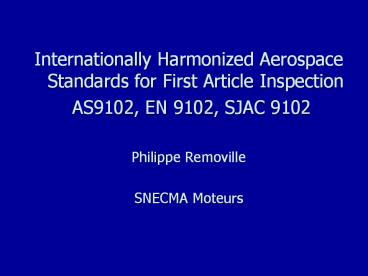 Internationally Harmonized Aerospace Standards for First Article Inspection PowerPoint PPT Presentation