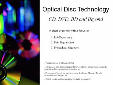 <Notice: Removed> Optical Disc Technology PowerPoint PPT Presentation