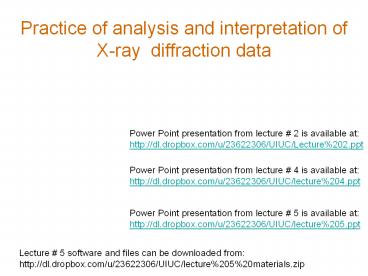 <Notice: Removed> Practice of analysis and interpretation of X-ray diffraction data PowerPoint PPT Presentation