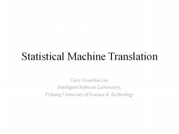 <Notice: Removed> Statistical Machine Translation PowerPoint PPT Presentation