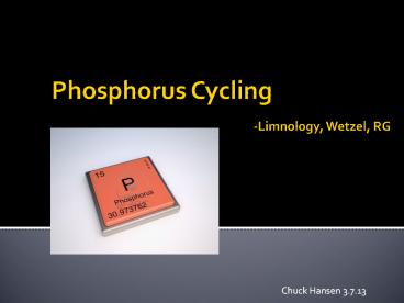 <Notice: Removed> Phosphorus%20Cycling%20-Limnology,%20Wetzel,%20RG PowerPoint PPT Presentation
