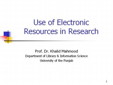 <Notice: Removed> Use of Electronic Resources in Research PowerPoint PPT Presentation