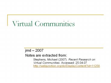 <Notice: Removed> Virtual Communities PowerPoint PPT Presentation