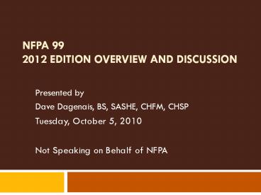<Notice: Removed> NFPA%2099%202012%20EDITION%20OVERVIEW%20AND%20DISCUSSION PowerPoint PPT Presentation