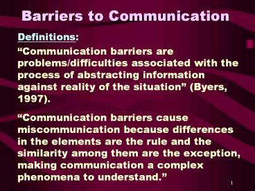 <Notice: Removed> Barriers to Communication PowerPoint PPT Presentation
