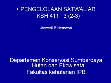 - Pengelolaan Satwaliar merupakan suatu teknik