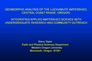 1GEOMORPHIC ANALYSIS OF THE LUCKIAMUTE WATERSHED,