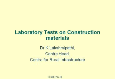 <Notice: Removed> Laboratory Tests on Construction materials PowerPoint PPT Presentation