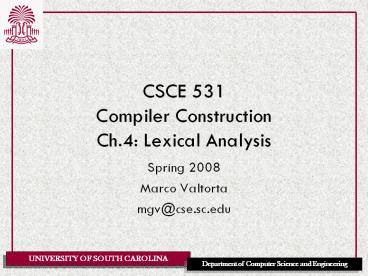 Title: CSCE 531 Compiler Construction Ch.4: Lexical Analysis