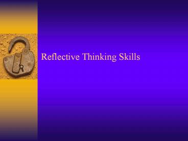 Reflective Thinking Skills PowerPoint PPT Presentation