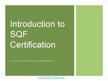 <Notice: Removed> Introduction to SQF Certification (Use PowerPoint PPT Presentation