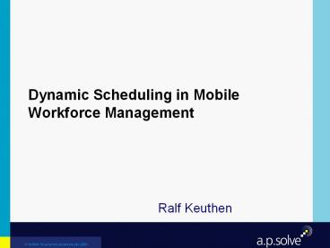 <Notice: Removed> Dynamic Scheduling in Mobile Workforce Management PowerPoint PPT Presentation