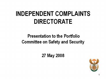 <Notice: Removed> INDEPENDENT COMPLAINTS DIRECTORATE PowerPoint PPT Presentation