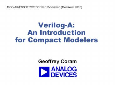 Title: Verilog-A:%20An%20Introduction%20for%20Compact%20Modelers