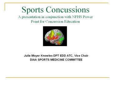 Title: Sports Concussions A presentation in conjunction with NFHS Power Point for Concussion Education