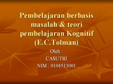 9Teori Pembelajaran Kognitif (E.C Tolman)