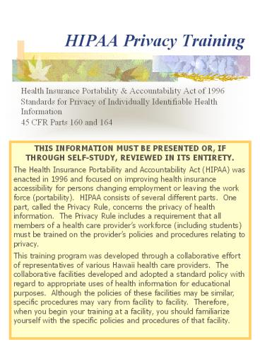 Identifiable Health Information - 45 CFR Parts 160 and 164