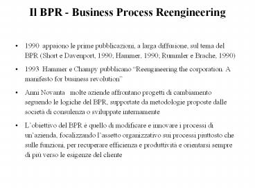 Title: Il BPR - Business Process Reengineering