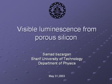 Visible luminescence from porous silicon PowerPoint PPT Presentation