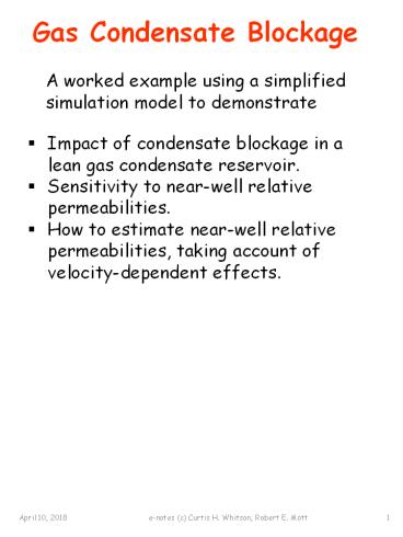 effect a different modeling approach is needed. - Lab experiments show that rel perms in gas