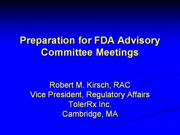 <Notice: Removed> Preparation for FDA Advisory Committee Meetings PowerPoint PPT Presentation